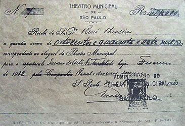 “Fui, por sugestão de Paulo Prado e Graça Aranha mais que um animador da “Semana”, fui seu empresário. Basta dizer que o Teatro Municipal me foi cedido, a mim, por alvará de 6 de fevereiro de 1922, pelo então prefeito da nossa capital, o saudoso Dr. Firmiano Pinto, que muito me distinguia com a sua amizade; consegui ainda de outro amigo meu o Sr. Dr. Washington Luiz Pereira de Souza, Presidente do Estado, que seu governo custeasse uma parte das despesas com a hospedagem dos artistas e escritores que vinham do Rio.